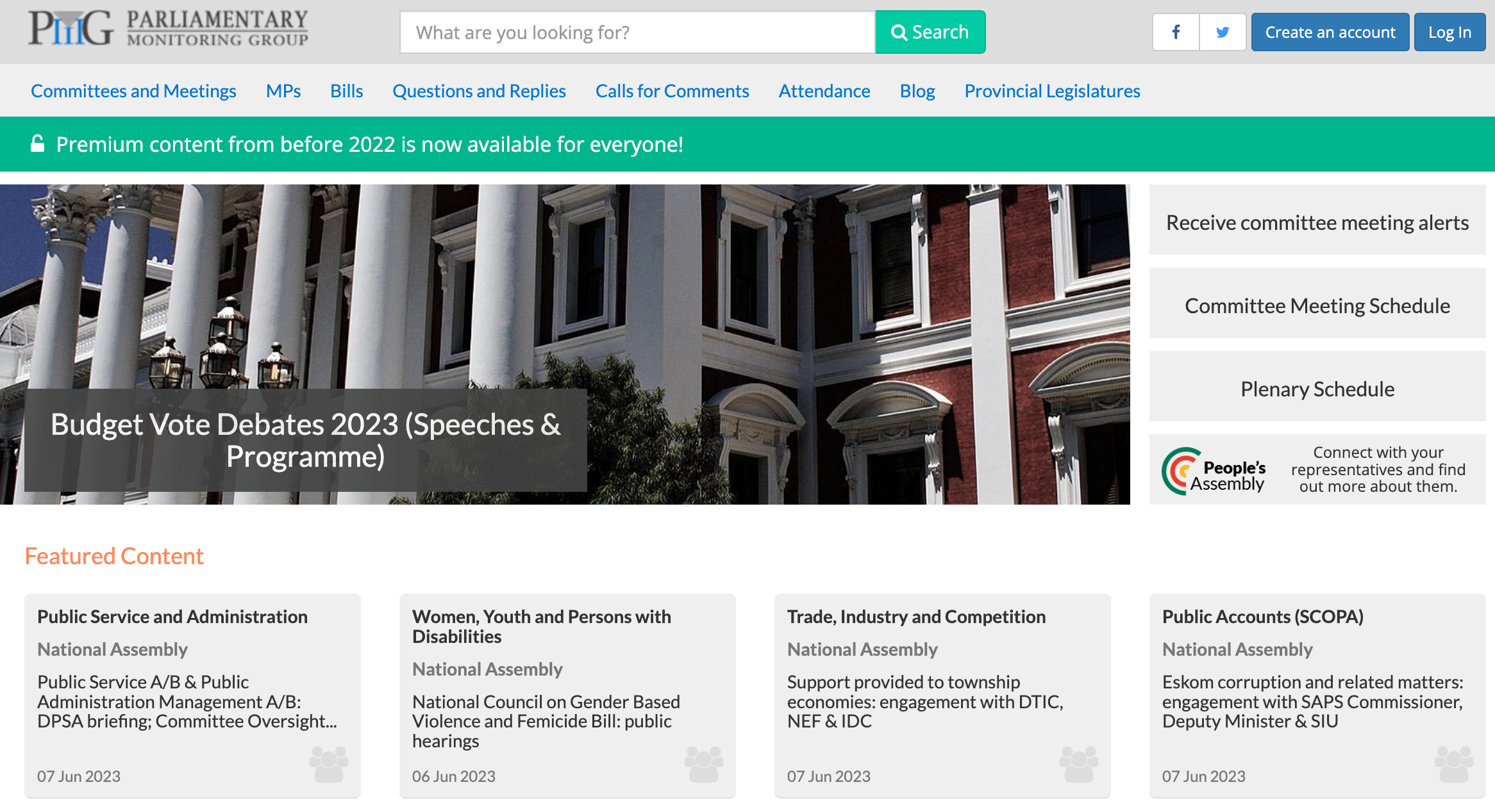 Parliamentary monitoring application for use by the Parliamentary Monitoring Group in Cape Town, South Africa.
