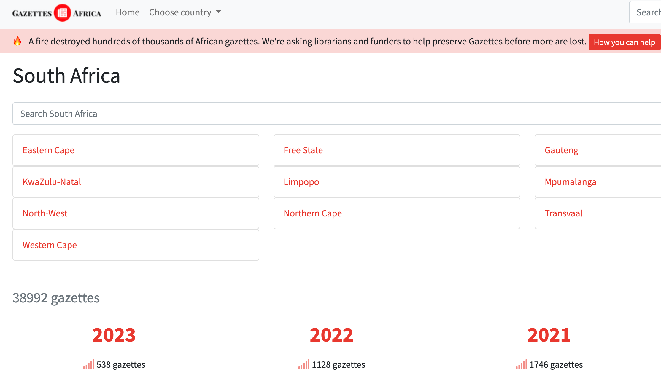 A collection of freely available gazettes in South Africa.