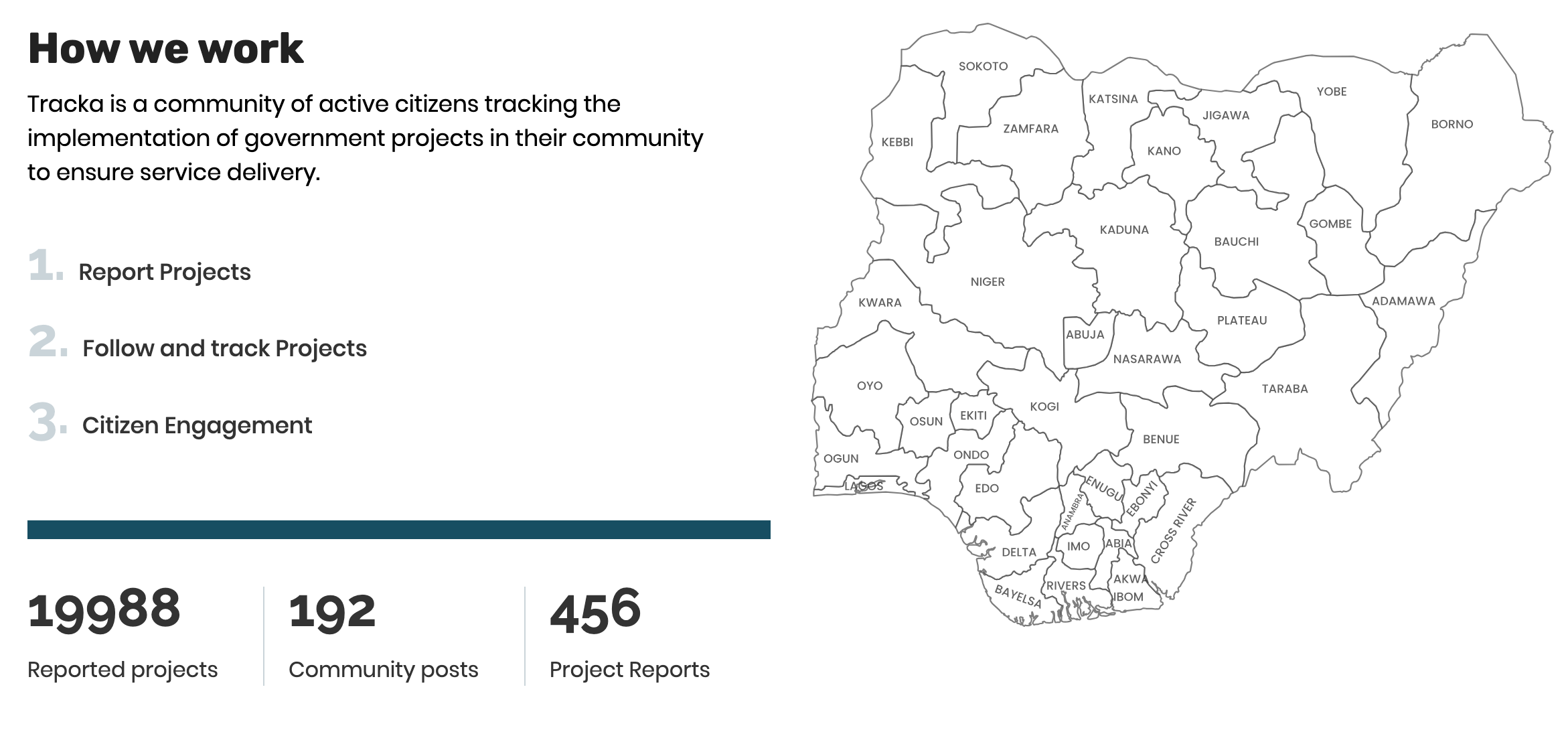 A social platform of/for active citizens who are interested in monitoring public projects in their communities thus enhancing budget performance across the country.